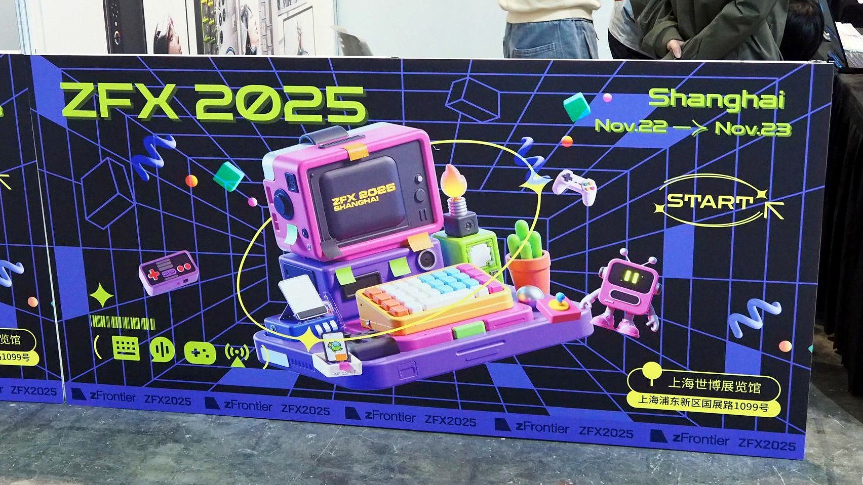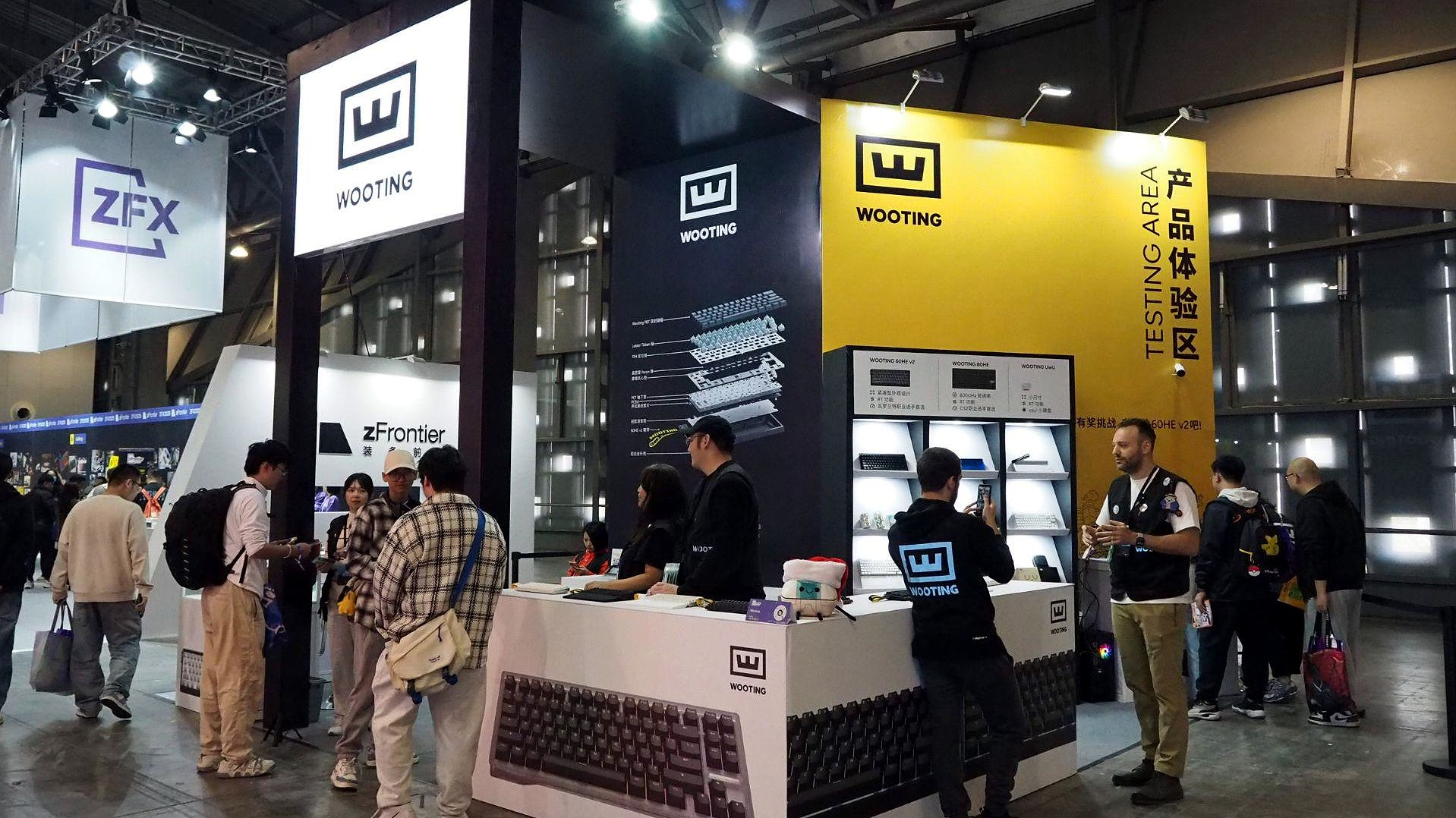 これら妙ちくりん(失礼!)なキートップが所狭しと並ぶ「ZFX」は、zFrontierが2025年11月22日~23日に中国・上海で開催したイベントである。アジア最大級のゲーム展示会の「WePlay Expo」(※電ファミ関連記事)と併開催され、会場面積の約4分の1を占める規模を誇っていた。