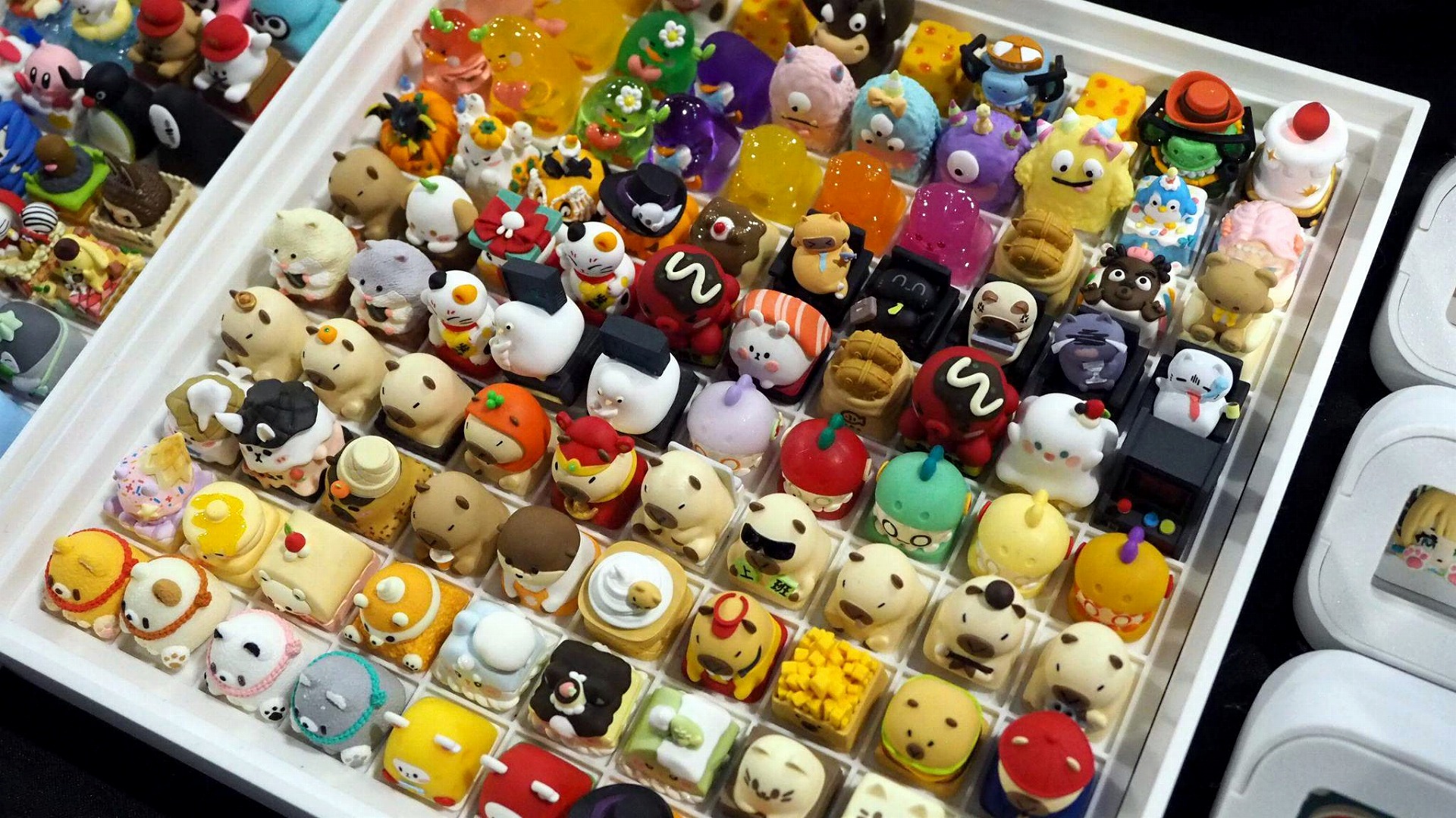 そのキートップに小さなフィギュアがちょこんと乗っており、来場客の若い女の子たちがネイルアートでも選ぶかのように、熱心に品定めをしている。彼女たちが眼差しを向けているのはコスメでもアクセサリーでもなく、キーボードのパーツだ。