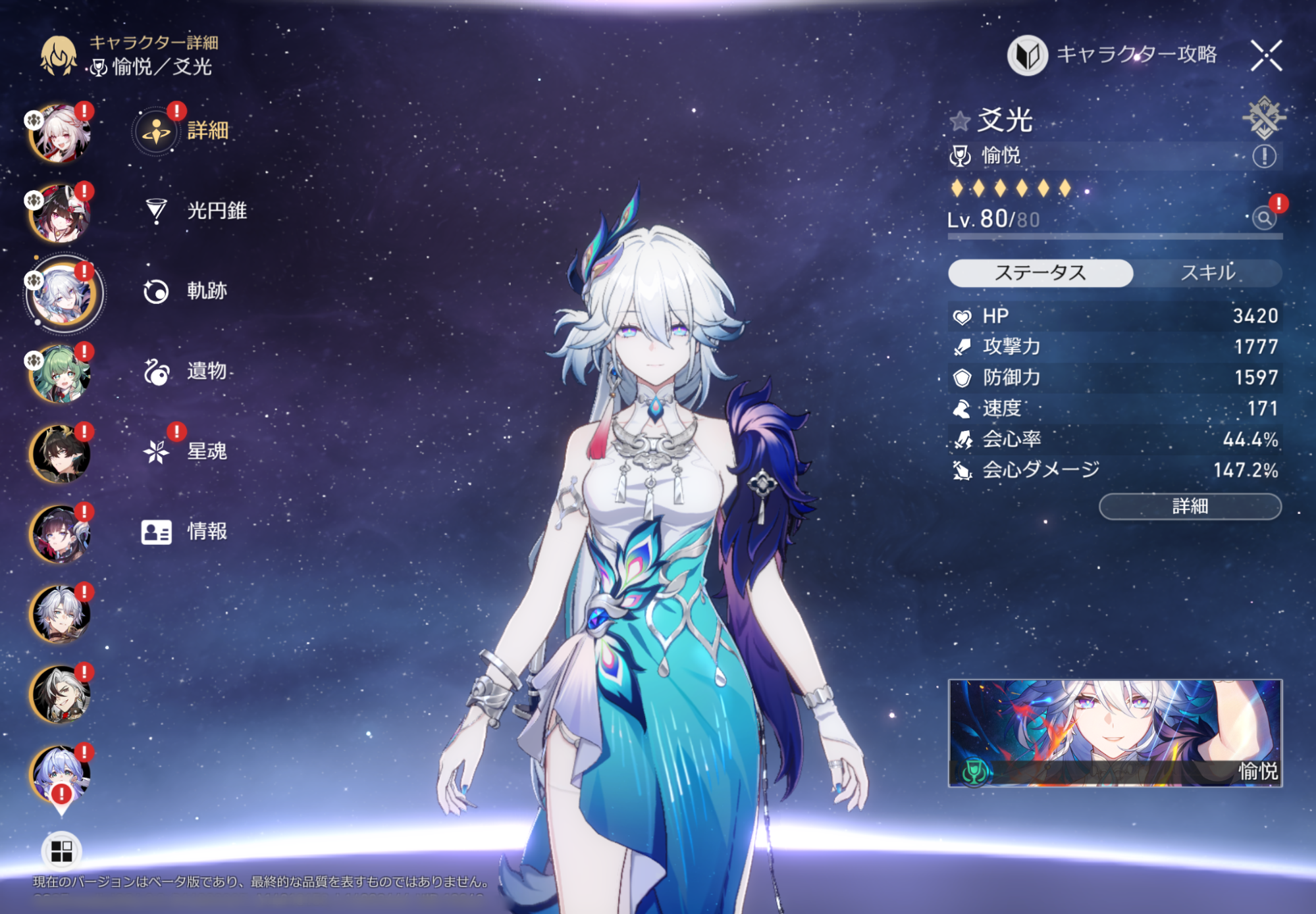 『崩壊:スターレイル』Ver.4.0新キャラの火花ちゃんがかわいすぎる! ビジュがいい。仕草があざとい。CV上田麗奈。動いても止まっていても「かわいい」が溢れているのはズル 記事へ戻る 12 / 19 ビジュがいい。仕草があざとい。CV上田麗奈。清純そうに見えて、どこか小悪魔的な魅力がある。動いても止まっていても“かわいい”が溢れているのはズル... [続きを読む]