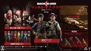 『バック・フォー・ ブラッド』とDLC「トンネル・オブ・テラー」の対応プラットフォームはPS4、PS5、Xbox One、Xbox Series X|S、PC(Steam / Epic Games Store)だ。