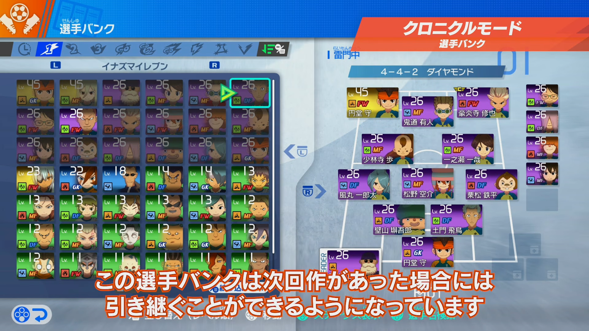 新作『イナズマイレブン 英雄たちのヴィクトリーロード』“次回作”があった場合のセーブデータ引き継ぎ機能が発表。集めた選手を登録でき、次回作があった場合は引き継げると日野氏がさらっと発言 記事へ戻る 3 / 3 集めた選手を登録でき、次回作があった場合は引き継げると日野氏がさらっと発言。次回作が現時点で存在するのかなどは明確には明らかにされていない... [続きを読む]
