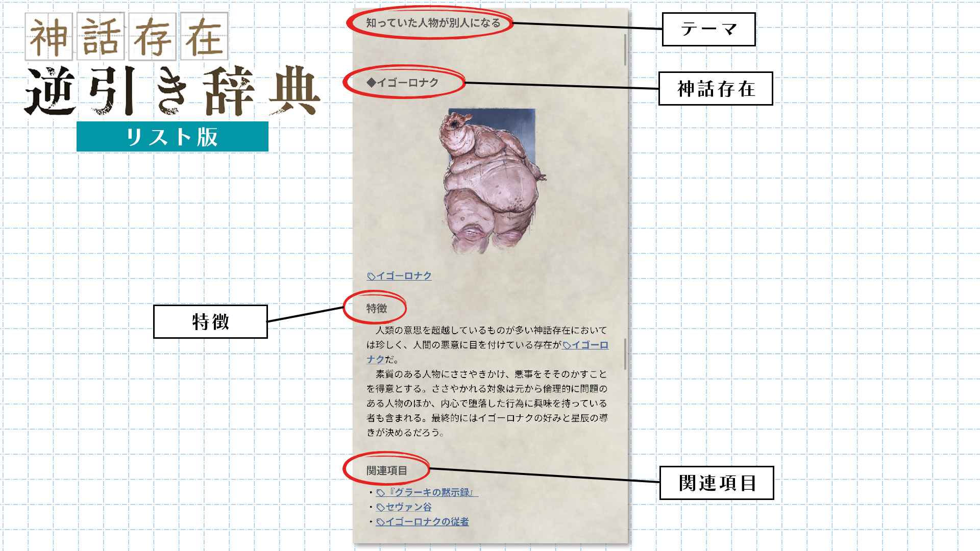 「クトゥルフ神話TRPG」の公式アプリに「神話存在逆引き辞典」のβ版が登場。「精神的な恐怖」を軸に、4つのテーマごとに複数の神話存在を紹介。関連するキーワード情報やシナリオフックなど、幅広い視点でシナリオ制作のヒントが得られる 記事へ戻る 2 / 3 「クトゥルフ神話TRPG」の公式アプリに「神話存在逆引き辞典」のβ版が登場。「精神的な恐怖」を軸に、4つのテーマごとに複数の神話存在を紹介。関連するキーワード情報やシナリオフックなど、幅広い視点でシナリオ制... [続きを読む]