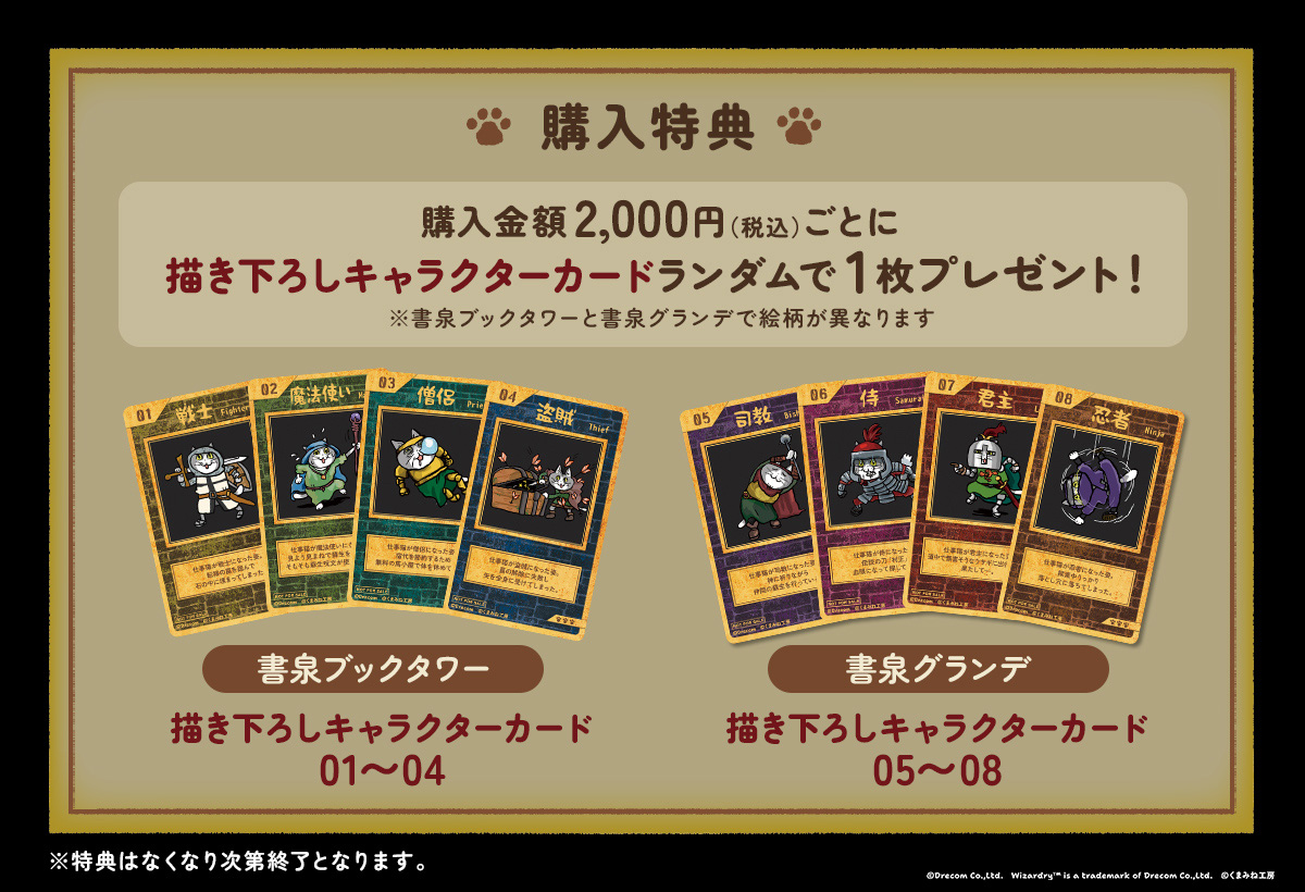 「ウィザードリィ」と「仕事猫」のポップアップショップが開催決定!冒険者の「あるあるの瞬間」を仕事猫がシュールで可愛らしく再現。「Wizardry」新作グッズも先行販売予定 記事へ戻る 2 / 5 株式会社ドリコムは、「Wizardry」と「仕事猫」のポップアップショップ「Wizardry SHOP 〜仕事猫の《迷宮》出張所〜」を、2月20日から3月15日まで、書泉ブックタワー・書泉グランデにて開催することを発表した。 ... [続きを読む]