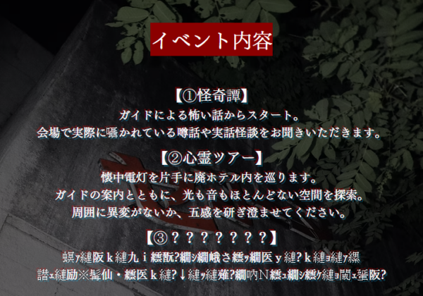 【イベント名】ホテルセリーヌ最恐心霊ツアー