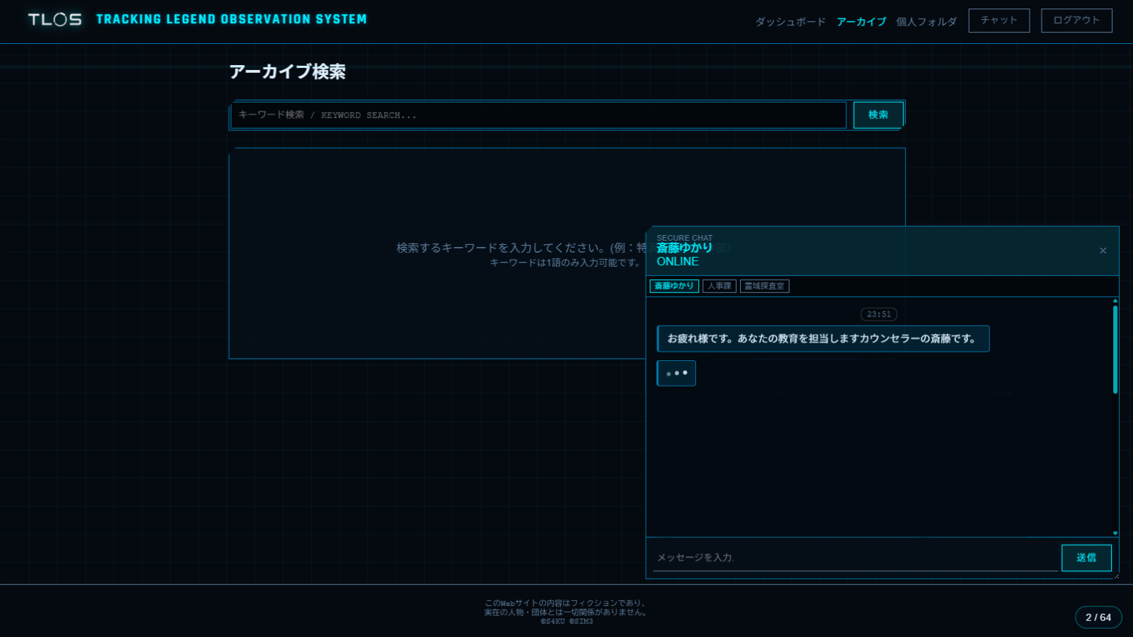 「都市伝説」が存在する世界で消えた“トイレの花子さん”の真相を追うWeb探索型ミステリーゲーム『都市伝説のXし方』が公開。実在するWebサイトを検索・調査しながら物語を進めていく 記事へ戻る 1 / 2 都市伝説を“管理”する防衛省直轄の秘密組織に職員カウンセラーとして潜入し、実在するWebサイトを検索・調査しながら物語を進めていく... [続きを読む]
