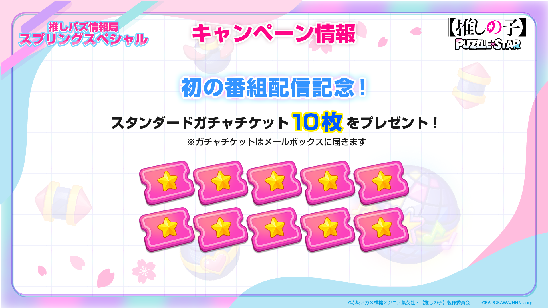 『【推しの子】』初のパズルゲーム『Puzzle Star』の新ガチャ「スプリングガーデン」が4月17日より開催。春をイメージした描き下ろし特別衣装の「星野アイ」「MEMちょ」が登場、期間限定の豪華ログインボーナスも展開予定 記事へ戻る 4 / 5 春をイメージした描き下ろし特別衣装の「星野アイ」「MEMちょ」が登場。ゴールデンウィークには豪華ログインボーナスも展開... [続きを読む]