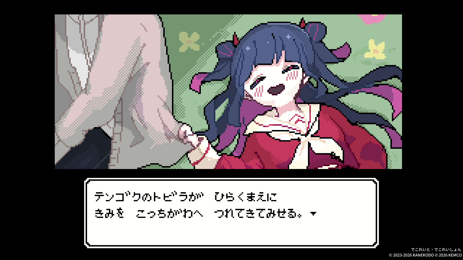 ユーレイの少女が愛する「きみ」を“こっち側”に連れていくため奔走する微ホラーゲーム『でこれいと・でこれいしょん』のSwitch/PS/Xbox版が本日発売 記事へ戻る 4 / 4 ドット絵がかわいい本作。「はなしかける」「ゆめまくら」「ぽるたーがいすと」「のろう」の4選択の積み重ねにより物語が分岐する... [続きを読む]