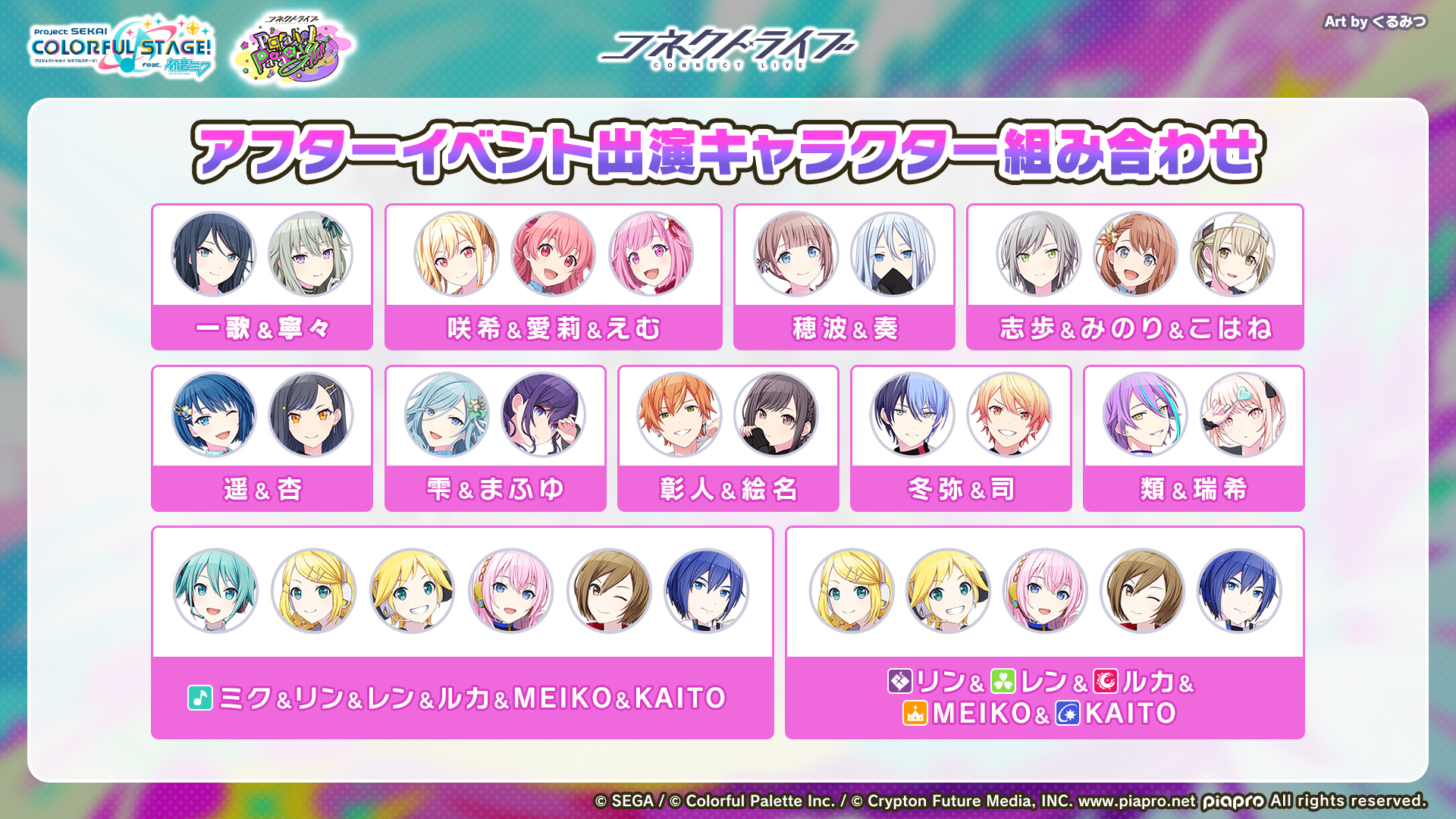 『プロセカ』スペシャルコネクトライブ「Parallel Paaaarty!!!!」が5月10日に開催へ。全キャラが“特別な組み合わせ”で出演。新規録り下ろし楽曲は13曲で、キービジュアルはくるみつ氏が担当 記事へ戻る 2 / 5 新規録り下ろし楽曲は13曲で、キービジュアルはくるみつ氏が担当。また、今後は段階を経て完全事前収録の新シリーズへ移行していく... [続きを読む]